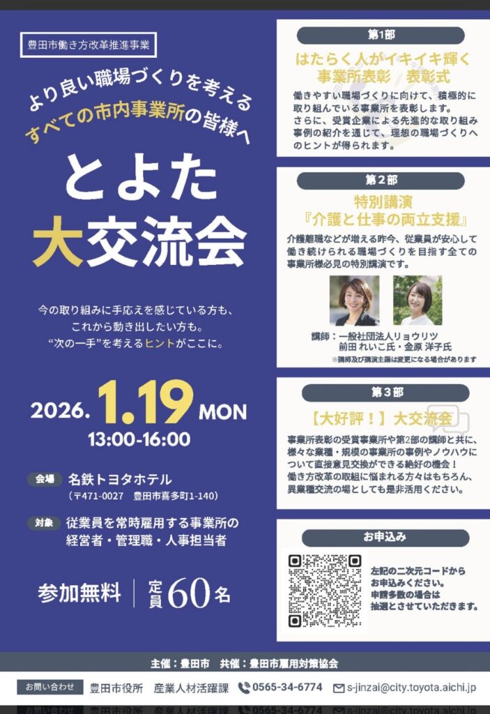 豊田市内事業所の経営者・管理職・人事労務担当者の皆さまを対象に、